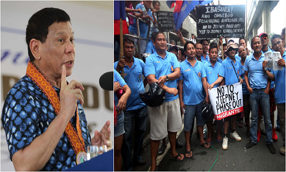 “Kaya, I’ll give you until the end of the month or until the end of the year. Sumunod kayo because January 1 [2018], pag may makita ako diyan mga jeep ninyo, walang, di narehistro, luma, guguyurin ko yan sa harap ninyo,” said Duterte